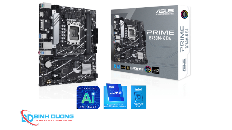 Trong phân khúc bo mạch chủ tầm trung, ASUS PRIME B760M-K DDR4 nổi lên như một lựa chọn "quốc dân" nhờ sự cân bằng hoàn hảo giữa giá thành và hiệu năng. Được thiết kế chuyên biệt để hỗ trợ các dòng vi xử lý Intel Core thế hệ 12, 13 và 14, đây là nền tảng vững chắc cho mọi cấu hình máy tính văn phòng hay PC Gaming tại Computer Bình Dương.