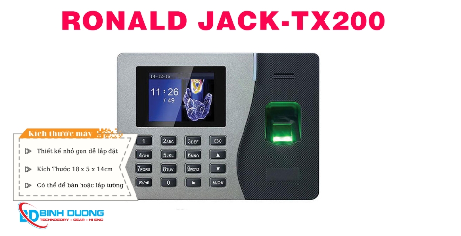 Ronald Jack TX200 có thể lưu trữ lên đến 2000 mẫu vân tay và 100,000 bản ghi chấm công.